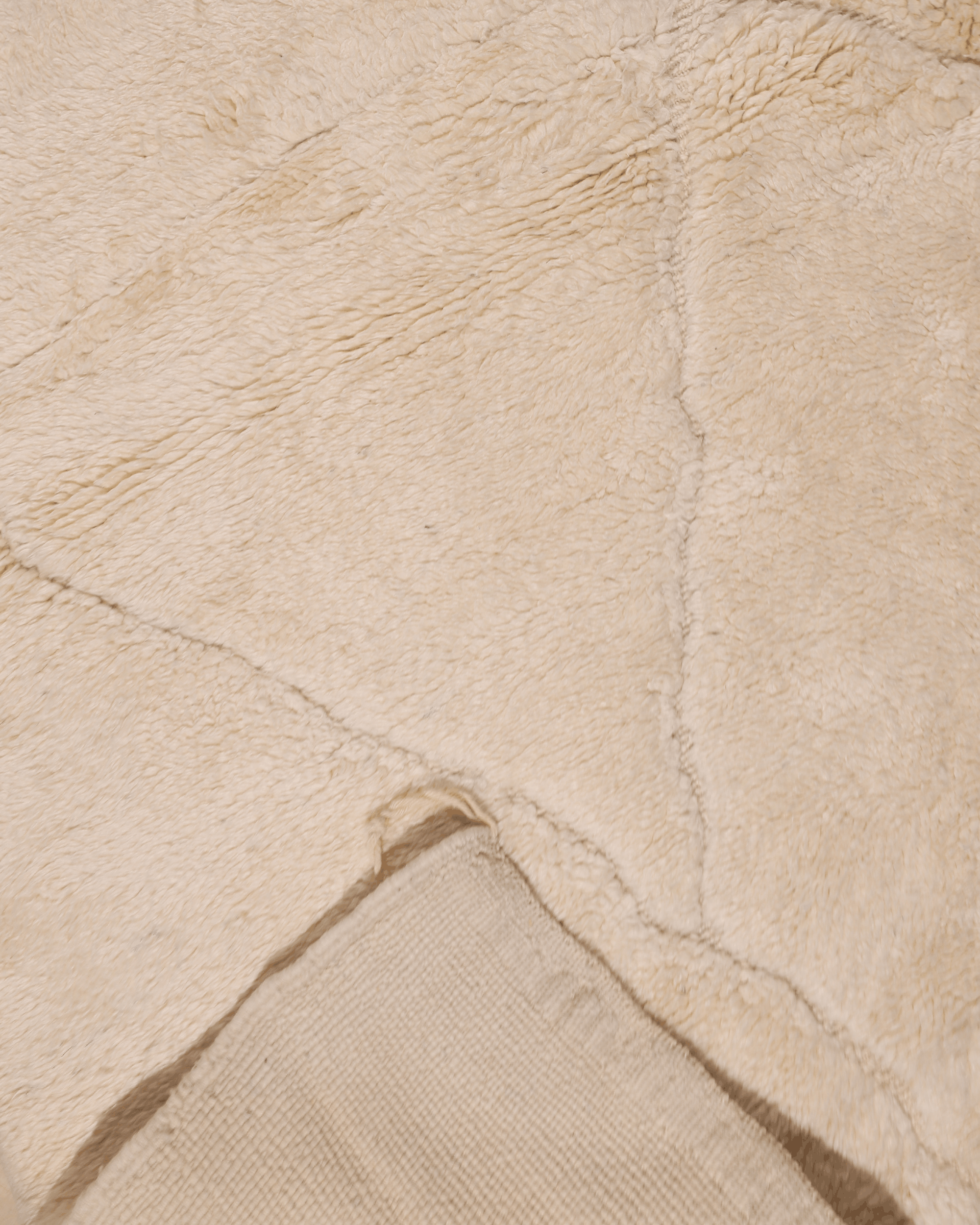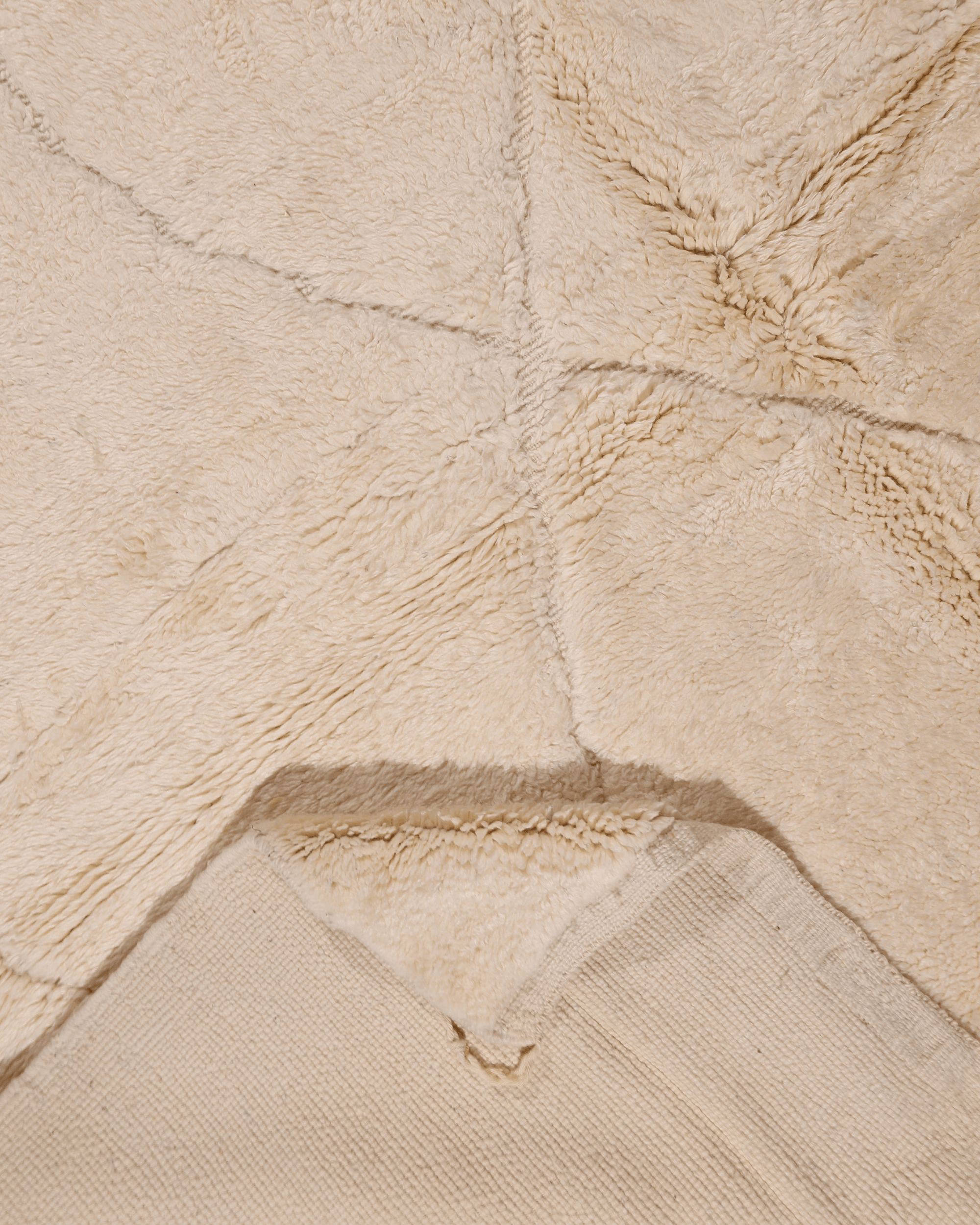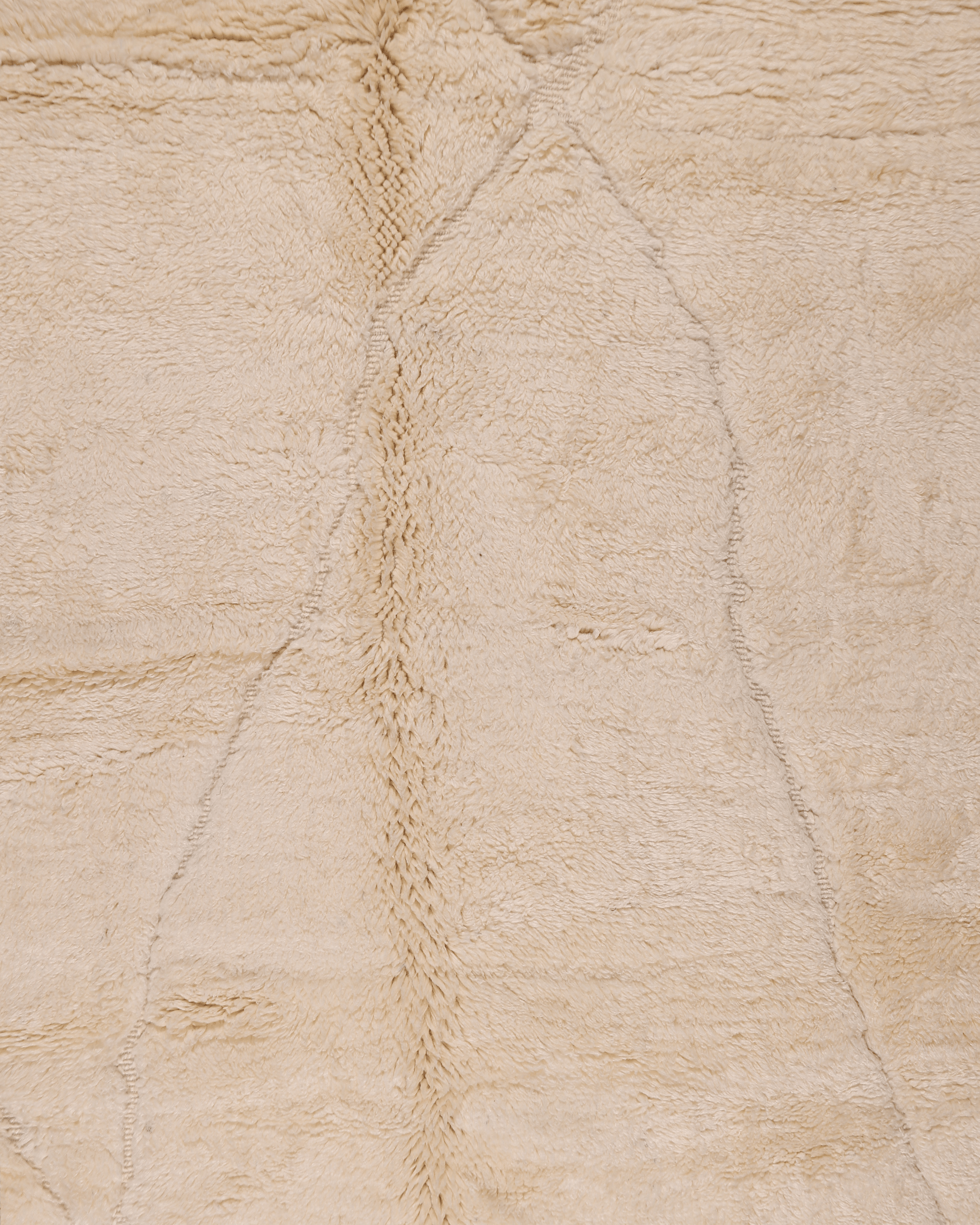 Crafted from 100% natural wool, this rug showcases a luminous ivory surface enhanced by faint intersecting lines and tonal shifts created through pile variation. The design remains understated and refined, allowing texture and material to speak softly.